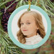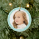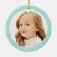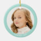 Anpassningsbar Flickfoto med ljusblå teal ram och text Ornament. Redot Text och datum som ska vara personlig.