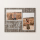 Anpassningsbarnas fotosamlingspussel för femårsdagen av bröllop. Har en träbakgrund och kan vara personlig med parets initialer eller någon anpassningsbar.