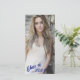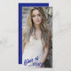 Elegant studenten meddelande, som gjordes på ett kort lagrar med lång smala, ett anpassningsbar foto av graden, som bakgrund. Modellexempel på fotoartighet hos Lorri Lang. Baksidan av meddelandet är blå, med all information från studenten och grad. Anpassa året, på framsidan och baksidan och bilden till kostym efter dina behov.