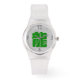 Anpassadets Grönt-ideogram för draken på pappra illustration som bakgrund. Du kan enkelt ändra färg i ideogrammet genom att klicka på anpassningsknappen. Utformning på Silicone Strap Clear watch med unga stil-nummer. Perfekt för det kinesiska nyåret för draken eller födelsedagen (människor födda i Dragon Year).
