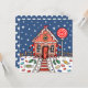 En färglös illustration av ett giftigt gingerbröd. Utsidan av huset är dekorerad med två polkagrisar och har en stor lollipop träd i trädgården. Marken är täckt av starkt vitsigt issocker snö och är täckt med sötsaker.
