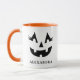 Fira Halloween i i stil med denna gigantiska anpassningsbar pumpa ansikte kaffe mugg som kan personlig med namn. Den här jack o lantern-designen i roligt har en strålande toothy flin och fantastisk ögonfransar!
