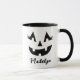 Fira Halloween i i stil med denna gigantiska anpassningsbar pumpa ansikte kaffe mugg som kan personlig med namn i svart manus. Den här jack o lantern-designen i roligt har en strålande toothy flin och fantastisk ögonfransar!