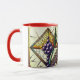 Börja din dag under det mjuka skenet av den anpassningsbara "Druvor och vete" glasmuggen. Denna högkvalitativa keramikmugg har en utsökt cirkulär illustration av djupt ametistfärgade druvor och livfulla, smaragdgröna vetestjälkar, alla placerade inom en klassisk diamantformad katedralglasram.