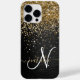Anpassa enkelt den här eleganten av trendig-höljet med söt guld mousserande glitter på en svart, borstad metallisk bakgrund.