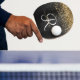 Anpassa enkelt trendigets elegant pingpongpadlar med söt guld mousserande glitter på en svart, borstad metallbakgrund.