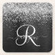 Anpassningsbar Glitter Black Gnistra Monogram Underlägg Papper Kvadrat