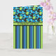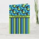 Ett hälsningskort för chic som kan anpassas efter tillfälle, med en blandning av "n'match mönster i Deckcourt Rand, med en blå Måne mönster i Neon Grönt, Turcos och Emerald Grönt mot svart bakgrund. En del av Posh & Painterly 'Blue Måne range.