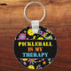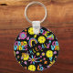 Söt svart dubbla sidade nyckelring med Groovy, retro 90-talet stil betleball mönster med gult betlebollar och svart bakgrund.