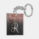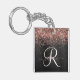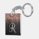 Anpassa enkelt den här eleganten av trendig-nyckelkedjan med söt ro guld mousserande glitter på en svart, borstad metallisk bakgrund.