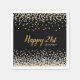 Lägg till din egen speciella beröring till den här elegant anpassningsbar-födelsedagsfesten napkin-designen med gnidig guld och silver-konetti över en svart bakgrund, modern manustypografi med ord "Lycklig 21:a" och födelsedagstjejens namn.