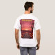 Anpassningsbar Halloween Sunset T-Shirt Detta är en Anpassningsbar Halloween Sunset White T-Shirt. Utformningen skapades med generativ konst. Konsten har en söt rosa Halloween solnedgång med pumpor. Den t-shirt som visas är vit. Solnedgång är överst i bilden i guld. Du kan ändra texten eller bilden med knappen Anpassa.