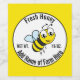 Ett muntert bi står i centrum för denna märkning av honung burk. Du kan redigera texten för att skapa anpassningsbarna. Visningen säger "Fresh honey NET WT. 16 OZ. Lägg till Namn från gården här. Bin finns inuti en vit cirkel som har svart och gult gräns. Texten är svart.
