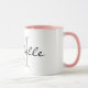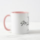 Anpassningsbar monogram kombinationsprogram mugg med rosa färg inuti. Utforma din egen personlig kopp. Den första utformningen av namn i klassens monogrammade utformning. Snyggtens typografimall med skripttext. finare-födelsedags- eller julklapp för vänner, familj, medarbetare, chef, lärare, tränare, kollega, företagsarbetare osv. Anpassade färg inklusive handtaget. Gör ditt eget unika kaffe mugg hemma eller på kontoret.