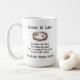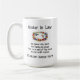 Fira vänskapens speciella band med denna hjärtliga syster i Law mugg (eller kusin, eller systerdotter, alla redigerbara). Med ett vackert blommigt hjärta med humande fåglar och ett rörande budskap är mugg ett perfekt sätt att hedra den obrutna förbindelsen mellan de bästa vänner som också är familj. Mugg är av högkvalitativ keramik och är idealiskt för att sippa kaffe, te eller en favoritdryck i hetten, samtidigt som man kommer ihåg kärlek som delas mellan sanna besties. En underbar gåva för födelsedagar, helgdagar eller bara för att berätta för din släkting hur mycket hon elak till dig. Finns även i andra storlekar och stilar med grafik som är anpassad för att passa i Tassar Charming Shop.
