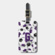 Det här fotbollslaget färg bagagetaggen innehåller bilden av ett kluster av varierad storlek lila, svartvita fotbollar på framsidan - anpassa med idrottsmannens monogram på framsidan och adress på baksidan - av katz_d_zynes