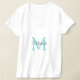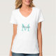 Anpassningsbar Light Teal Monogram Initial Namn Elegant Modern Trendig Template Women Clothing Toppar & T-Shirts Women's T-Shirts / Womens V-Nacke T-Shirt.