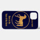 En chic och ett anpassade knappt där fodral för att skydda din iPad Air, med en mönster av guld-färgad hästar på en blå bakgrund som du lätt kan ändra om du vill. Hästmotivet målades för hand av Judy Adamson.