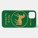 En chic och ett anpassade knappt där fodral för att skydda din iPad Air, med en mönster av guld-färgad hästar mot bakgrund av Hunter-Grönten som du lätt kan byta om du vill. Hästmotivet målades för hand av Judy Adamson.