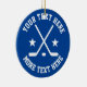 Anpassningsbar ishockeysport Julgran ornament. Sportidedesign med atletisk typografisk mall, korsande hockeysticks, puck och stjärnor. Lägg till din egen hälsning, roliga citat, familj namn, team namn etc. Coolans presentidé för vänner, familj, spelare, mamma, pappa, tränare, barn, pojke, flicka, tränare, medarbetare osv. Mest x-mas-dekoration. Inkluderar sparkly guld-sträng. Glad helg! Blått eller anpassningsbar färg.