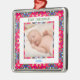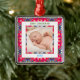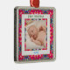 Anpassningsbar Jolly och Festive jul Photo Bild Ram Square Träd Ornament. En färgstark och ljusstark dekoration. Byt ut fotot och text mot ditt eget för att fira dina Yuletide-minnen. Ge som ett fyllnadsmaterial är en viktig gåva till familj och närstående. I varm vinter färg av rött, grönt, orange och lila. Med blått tips av isig. En budgetvänlig present till mor- och farföräldrar, föräldrar, par, syskon och bästa vänner. Ett glatt och starkt färg-block mönster ram gräns i bild. Baserat på färgstarka, traditionella mönster. Använda som personlig för att dekorera Julgran. Ha en maximalistisk jul!