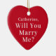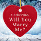 Vill du gifta dig med mig? - "Red Hjärtprydnad" med ett eget namn för ett unikt giftermål frieri under Helgdagarna. Elegant porslin keramiska helgdag, vita, med svarta bokstäver. Med Julgranar och stjärnor.