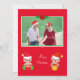 Anpassningsbar julfoto och sött elf-par på rött julkort. Perfekt för par. Text och foton kan anpassas.