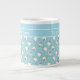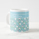 En roligt Jumbo Coffee Mugg för att anpassa sig, med en mix'n'match-design för tecknad Sheep och en samordnande mönster, båda på ljusblå Himlar Blue-bakgrund.
