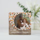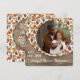 Unikt kort för helgdag av klass, trendig, söt och dekorativ Thanksgiving. Cute WITH KÄRLEK FROM text and room to custom with a phop and namn (or family namn) of you selected. Med klassisk varm orange under hösten ser rött och brunt botaniskt löv mönster och ett bondgård i stil förstrött träbakgrund ut. Och ett anpassade som tänker sig att falla hälsning dikt på kortets baksida.