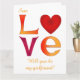 Klassisk illustration med ett handritat mittkvadratiskt motiv bestående av stora brev som stavar ord KÄRLEK med brev O ersatt av ett hjärta. Färgaden är och . Anpassningsbarna nedanför den färgstarka motiven kan vara personlig. Du kan ändra ordalydelsen genom att trycka på länken "Detaljer" bredvid posten "Anpassa den här mallen". Du kan också ändra texten stil (storlekt, teckensnitt, färg etc.) genom att trycka på knappen "Redigera design", där den kompletterande texten också kan raderas om du vill. Perfekt för anpassning för att fråga din speciella någon om de vill vara din flickvän. Unik digital grafik som innehåller vektorns teckning-exklusiv till HJ-grafik med Linearity Curve.
