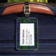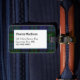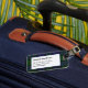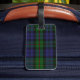 Snyggt bagagetagg i den traditionella skotska blått, grönt, svart, gult och röd klan MacEwen tartan plaid mönster. Ett tomt textområde med blå kanter, på framsidan, har redo för svarttext som du kan anpassa med din information. Perfekten gör det möjligt att hitta ditt bagage och ger en underbar presentidé.
