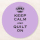 Behålla Lugn och Quilt On-populärt talesätt i svart typografisk text finns på denna uppsättning med sex Wisteria lavender 4" x4" runda underlägg. Byt "quilt" till valfri annan ord för att göra ord till din egen med hjälp av den mall som finns. Välj bland många andra former. Tuff, tålig och absorberande; vibrerande ensidig utskrift fullt-färg. Se "Om den här produkten" på sidan för mer information. HIGH-recensioner.