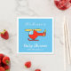 Personlig babyduschservetter med söt leksak-helikopter. Färgfull utformning av flygplan med födelsedatum eller firande. Motivering av flygtema för små barn. Skapa dina egna finare babyduschservar med anpassade. I pastellform, gult av ljus rosa lila, blått grått osv. Lämpligt för pojkar och flickor. Tur idé om att bli ny mamma, mor. Även roligt för barn 1:a födelsedagen party. Typografi av elegantens snyggt.