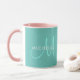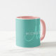 Anpassningsbar Elegant Monogram Inledande Trendig Mall Light Teal Rosa White Combo Coffee Mugg.