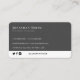 Den svarta chicen, eleganten och det enkla affärskortet i det moderna gråttet och i det vita stil med rundade hörn har din logotyp, namn, specialitet och arbetsbeskrivning framför och fullt, karriär, detaljer och namn-medier med ikoner bakifrån, social för alla yrkeskonsulter, revisorer, advokater, advokater, perfekter.