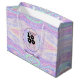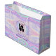 Anpassningsbarna med kampanjpresentpåsar som är märkta med din logotyp för företag och som är tillgänglig i avslutat eller glansigt, ger en professionell till dina företagspresenter, presenter och shopping bag för detaljhandel samtidigt som du annonserar ditt företag. Tillverkad av Digiwrap. Ingen minsta orderkvantitet och ingen konfigurationsavgift. Den här påsen är inställd på en pastelliserad iriserande faux holografik regnbåge med flytande virvelformad färgad simulerad glitter bakgrund, redo för logotypens grafik.