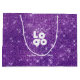 Anpassningsbarna med kampanjpresentpåsar som är märkta med din logotyp för företag och som är tillgänglig i avslutat eller glansigt, ger en professionell till dina företagspresenter, presenter och shopping bag för detaljhandel samtidigt som du annonserar ditt företag. Tillverkad av Digiwrap. Ingen minsta orderkvantitet och ingen konfigurationsavgift. Den här väskan är inställd på en underbar, violett lila metallisk faux-folie med texturerad metalisk tryckbakgrund med simulerade gnistor och glitter glyssning, redo för din logotyp eller annan grafik.
