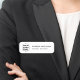 Den här eleganten namn bricka kombinerar en slimmad svart och vit design med anpassningsbarnas logotyp, namn och titel, vilket ger en tydlig identifiering och ett polerat utseende. Perfekt för uniformer, evenemang eller företagsinställningar för personalen ger både funktionalitet och sofistikerad märkning.
