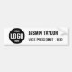 Visa upp ditt varumärke och professionalism med denna anpassningsbara logotyp- och jobbtitel-dekal. Denna moderna minimalistiska design har en ren namnskyltsstil, perfekt för företag, butikspersonal eller någon som vill visa sin företagsidentitet. Lägg helt enkelt till din logotyp och jobbtitel för en personlig och professionell look. Denna dekal är ett bra sätt att marknadsföra ditt företag, identifiera anställda eller helt enkelt lägga till en touch av varumärkesidentitet på ditt fordon. Den enkla och minimalistiska estetiken säkerställer att ditt budskap är tydligt och lätt att läsa. Tillverkad av slitstarkt material, är denna dekal byggd för att hålla och motstå väder och vind. Det är ett utmärkt sätt att öka synligheten för ditt varumärke vart du än går.