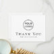 Tack för elegantens affärsverksamhet med anpassningsbar logotyp eller annan bild på framsidan och anpassningsbarna, kontaktinformation för företag och social-medieikoner på baksidan. Du kan ändra bakgrund färg, typsnitt och teckensnitt färger med verktyg
