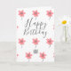Ett modernt Business Grattis på födelsedagen Greeting Card med en enkel rosa blomma mönster på vit bakgrund. Ändra "logotypen här"-bilden med logotypen eller ta bort den om du vill använda den utan logotyp. Glöm inte att även anpassa den inre texten.