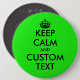 Anpassningsbar Behålla lugn kolossal runt nyare grönt 6-tums knappar för återtagning. Skapa din egen konstiga Behålla lugn och fortsätt med parodi. Enormt gigantiskt storlekt stift med modern typografi och krona. Anpassadets malldesign. Hela färg kan ändras. Roligt för Födelsedagsfest, evenemang, affärsverksamhet, bröllop etc. Kontors humor-presentidé för vänner, familj, medarbetare, företagsanställda, kolleger, chef, volontärer, gäster, kunder, kunder osv.
