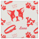 Anpassningsbar Luna Terrier i Red Fabric. Boston Terrier, Bones och Collar mönster i rött. Lägg till namn i din hårig vän.