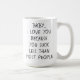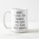 Mugg för kaffe, te, mjölk, choklad med hett, orange eller någon annan favoritdryck. Med ett lustigt citat för kärlek i ditt liv, make eller hustru, pojk- eller flickvän, eller till och med mamma eller pappa. Med alternativet att anpassa med namn, ord eller (begränsad) text som du väljer. Låt dem med en känsla av humor veta att ni kärlek dem till måne och tillbaka med detta sarkastiska och humoristiska ?I KÄRLEK NI, EFTERSOM NI SUCK MINDRE ÄN DE FLESTA ANDRA? citat.