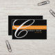 En svart bakgrund med en orange rand. Byt ut det stora "cet" med det första brev av ditt företags namn för en beställnings- look. All din information om kontakten är på baksidaen av kortet. Stilsorten och stilsorten storleksanpassar, och färg kan ändras.
