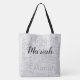 En fin och monogrammad design för en svart och grått totebag. A mönster i personlig namn med olika typsnitt stilar, med en stor inledande början