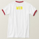 Manar Text eller Namn eller Ord med Bright Gult Färg Text och Stil är Basic Ringer T-Shirt, Färg type är White/Red och Storlek type är Vuxen L.