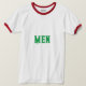Manar Text eller Namn eller Ord med Kelly Grönt Färg Text och Stil är Basic Ringer T-Shirt, Färg type är White/Red och Storlek type är Vuxen L.