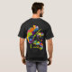 Den här t-tröjan är redot som ska anpassas med ditt eget meddelande på skjortans framsida med ett grönt bläck. Den här garantin har söta illustrationer av kameleoner i ljust regnbåge i stil i tecknad med två kameleoner på framsidan ovanför och nedanför ditt meddelande, och ytterligare tre kameleoner på baksidan av garantin.