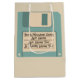 Kommer du ihåg disketter? Den här presentpåsen är en explosion från det förflutna med illustrationen av en ljusblå diskett. Använda mallen fält för att enkelt lägga till ditt eget meddelande i skivans etikettområde. Båda sidor av väskan har en bild och ett meddelande på skivan. Den här koordinerar med andra objekt i samlingen Gamla tekniker från Asterisk Designer. Gör en roligt presentsäck för presenter för gäster och datornördar i alla åldrar.